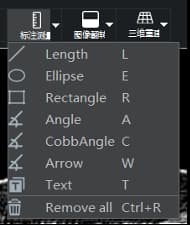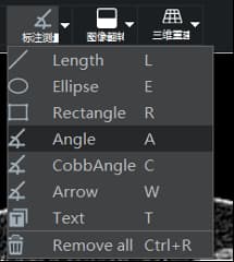 单击工具栏上的“标注测量”按钮,从标注测量下拉菜单中选择Length(或按L键),将光标放在起点上,然后按下鼠标左键并拖动鼠标以绘制长度测量的线段。松开按钮完成绘图。距离值将以毫米或像素显示。