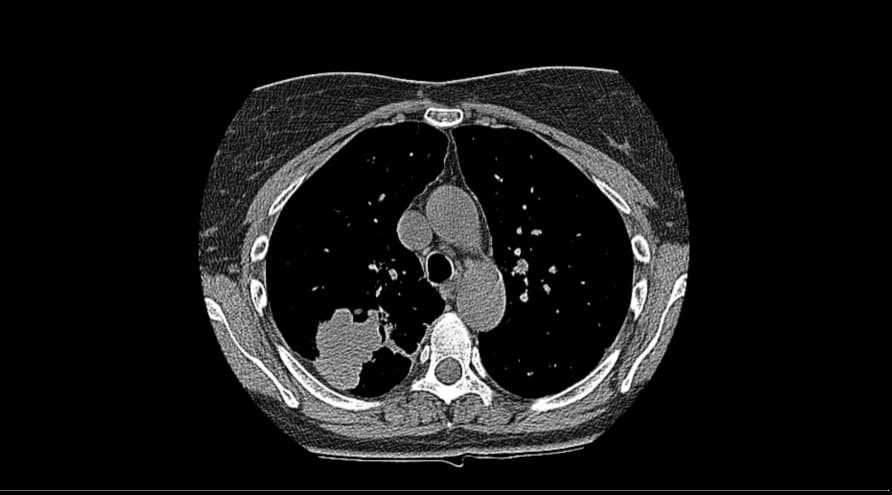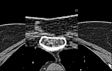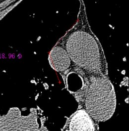 显示CT值。点击图像某个部位时在底部显示当前的CT值,如下图所示。