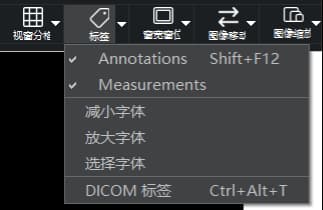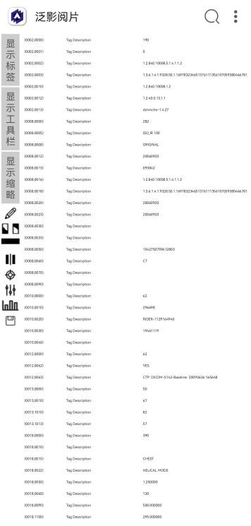 从标签下拉菜单中单击“DICOM标签”模式(或按”Ctrl+Alt+T”键),即可显示出来医学影像的标签信息。