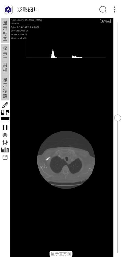 显示直方图。以直方图形式显示出DICOM图像的统计信息。